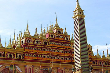 The major tourist attraction in Monywa is Thanboddhay Pagoda, a Buddhist temple said to contain over 500,000 images of Buddha, with a huge stupa resembling Indonesia's Borobudur, located about 20 km southeast of Monywa, It dates from 1303, although it was reconstructed in 1939.
