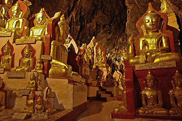 One of the main tourist attractions in Shan state, Pindaya is famous for its huge caverns containing thousands of Buddha images in various sizes and shapes that have been consecrated for worship over the years. Outside of the caverns, the picturesque town is covered with a numerous of Ficus trees, planted over 200 years ago. There is also an itinerant market held every 5th day.
