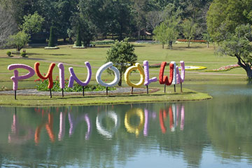 Pyin Oo Lwin, formerly known as Maymyo named by the British after Colonel May, is a popular scenic hill station, over 1000 metres above sea-level, located in the Shan Highland, some 67 kilometers (42 mi) east of Mandalay. It is well known for its colonial style houses with large compound and pine trees, eucalyptus and silver-oak abound in town. This one-time British hill town hideaway, about two hours drive from Mandalay, offers cool weather, eclectic architecture and period stagecoaches.